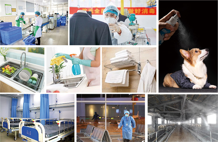 根據(jù)不同情況選用50-200mg/L的濃度用噴霧裝置直接噴灑到垃圾垃圾車垃圾站點、廁所等表面及空間里,滅殺產(chǎn)生臭氣的細菌,同時可迅速將空氣中的臭氣通過氧化或者氯化去除。